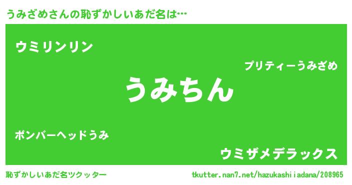 | ポケモン風あだ名 | 『ウミゴンZ』『ウーミイ』『ゼニウミ』 |
