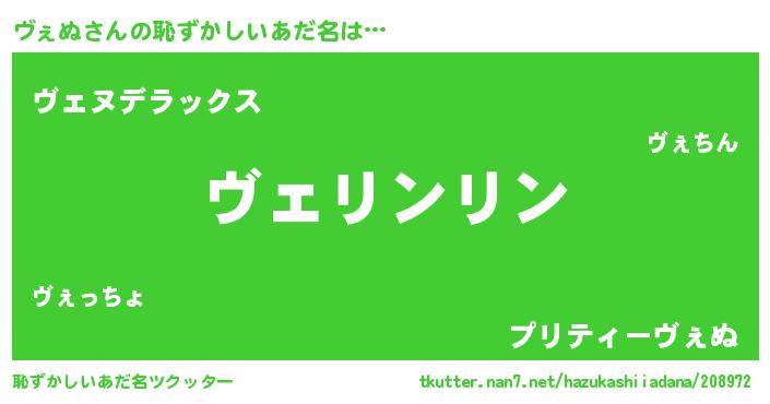 | ヘコむあだ名 | 『ヴぇを』『ヴぇもー』『なまこ酢』 |