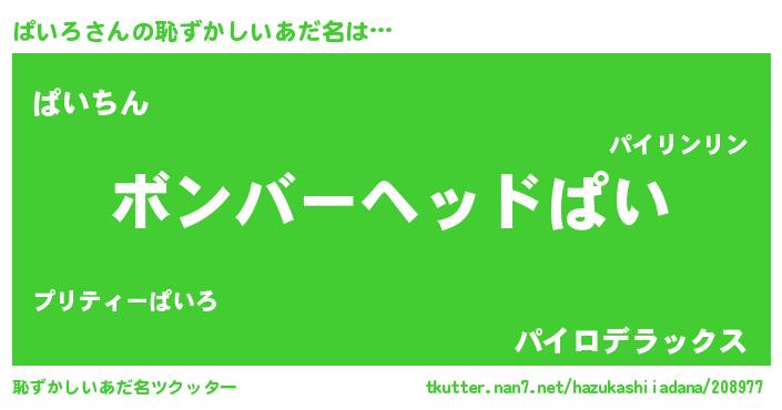 | ヒーロー風カッコイイあだ名 | 『慈愛の使者ぱいろ』『ネオパイロ』 |