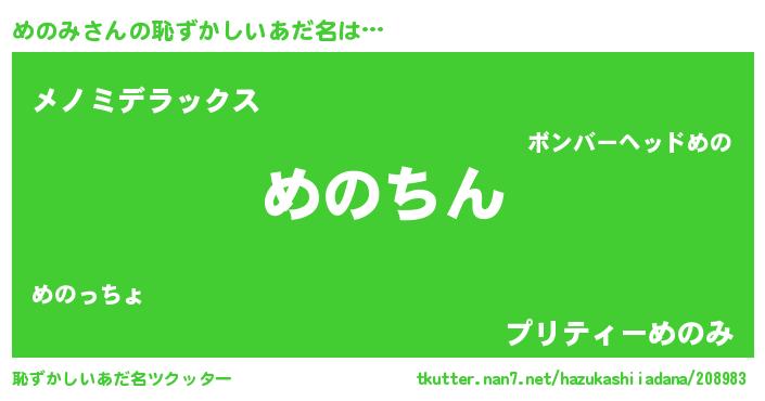 | 意味不明あだ名 | 『永久保存めのみ』『自称めのみ』 |