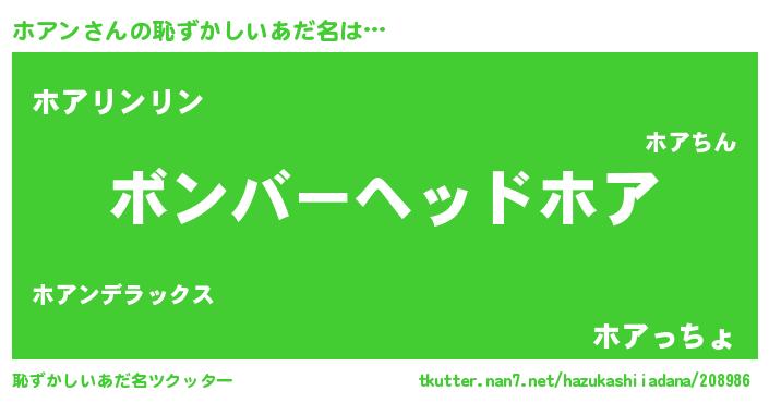 | ヘコむあだ名 | 『ホアお』『酢こんぶ』『ホアにゅー』 |