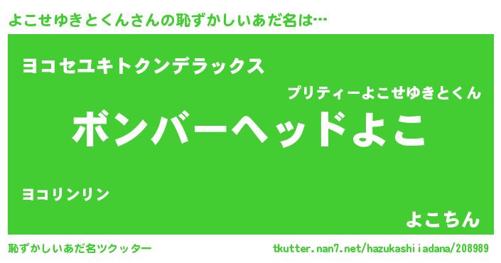 | 欧米人風あだ名 | 『アンジェラ・よこせゆきとくん』 |