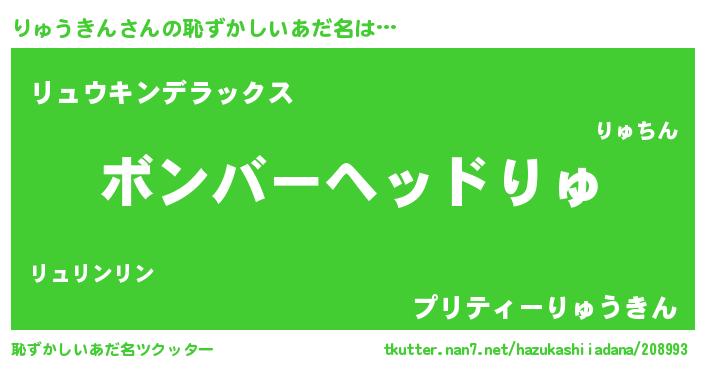 | ヒーロー風カッコイイあだ名 | 『天空の使者りゅうきん』『幻影騎士リュ』 |