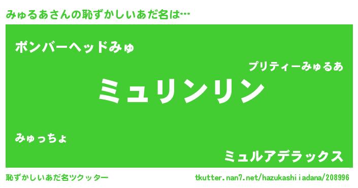 | 男性向けラノベタイトル風あだ名 | 『ダンジョンにみゅるあを求めるのは間違っているだろうか』 |