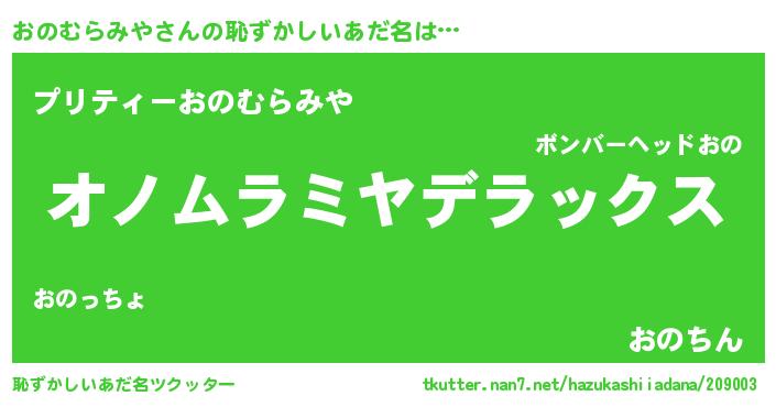 | 意味不明あだ名 | 『自称おのむらみや』 |