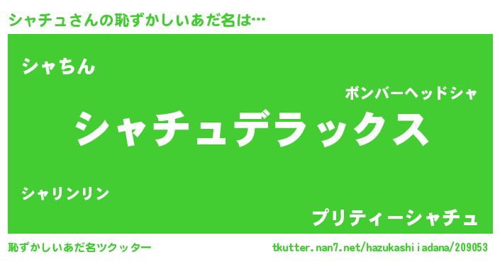 | ヘコむあだ名 | 『シャチュ(苦笑)』『シャにゅー』 |