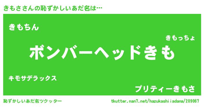 | ヘコむあだ名 | 『きもさ(笑)』『きもにー』 |