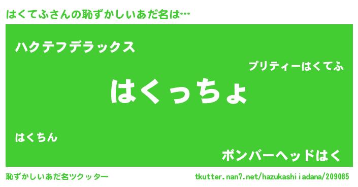 | 意味不明あだ名 | 『はくてふフォーエバー』『自称はくてふ』 |