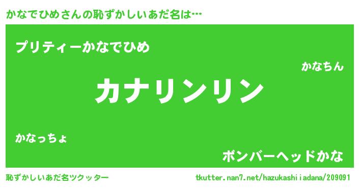 | 男性向けラノベタイトル風あだ名 | 『かなでひめの嫁は女の子じゃないと思った?』 |