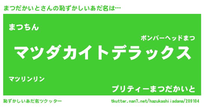 | 意味不明あだ名 | 『自称まつだかいと』 |
