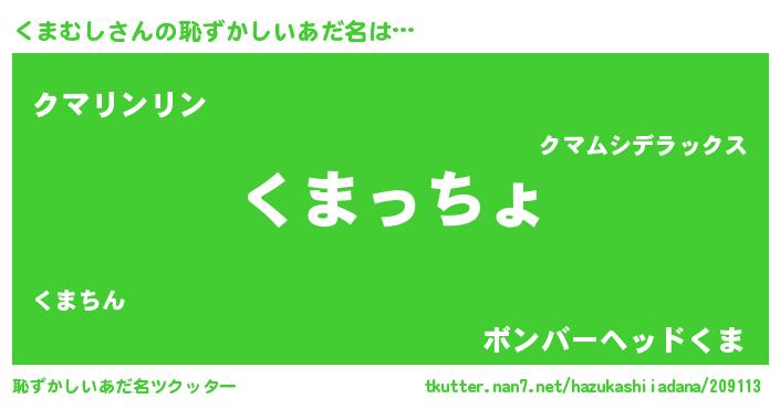 | ポケモン風あだ名 | 『クマムダネ』『ヒクマムシ』 |