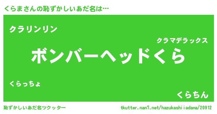 | 意味不明あだ名 | 『眠気覚ましガムくらま味』『自称くらま』 |