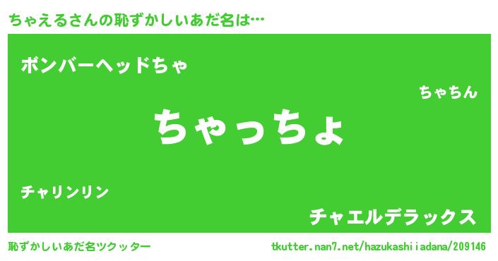 | ヘコむあだ名 | 『なまこ酢』『ちゃえる(震え声)』 |