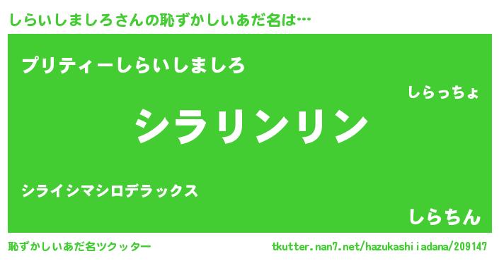 | 意味不明あだ名 | 『とにかく怪しいしらいしましろ』 |