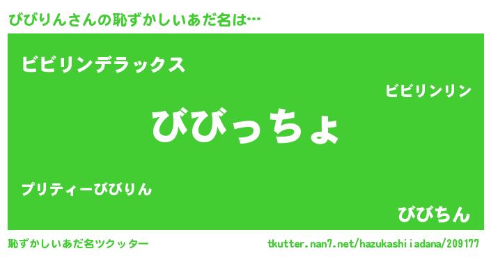 | ポケモン風あだ名 | 『ビビゴンZ』『ビビリダネ』 |
