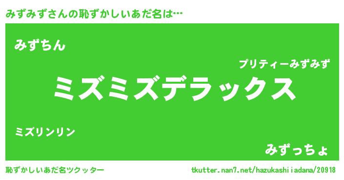| 意味不明あだ名 | 『住所不定無職みずみず(8歳)』 |