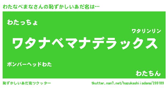 | 意味不明あだ名 | 『自称わたなべまな』 |