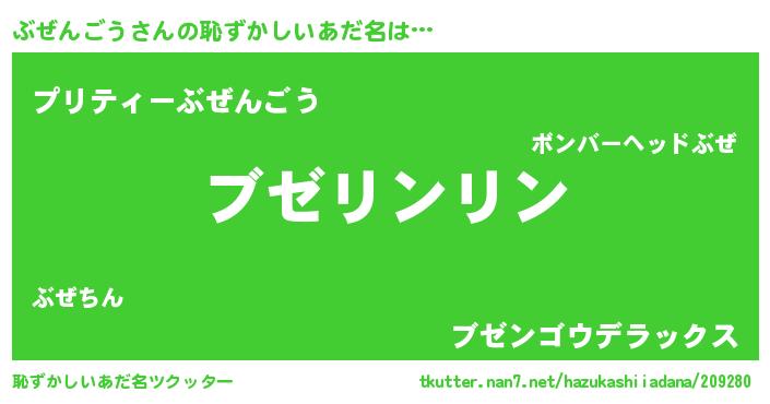 | ポケモン風あだ名 | 『ブゼキング』『ヒブゼンゴウ』 |