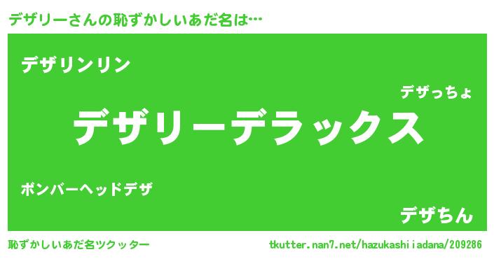 | 男性向けラノベタイトル風あだ名 | 『この素晴らしい世界にデザリーを!』 |