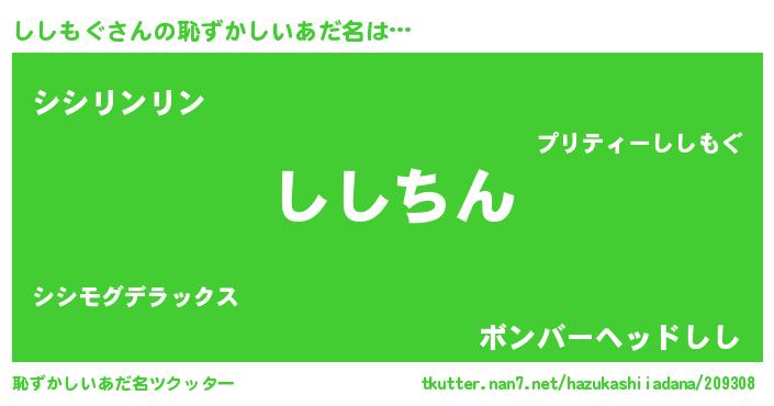 | ヘコむあだ名 | 『ししもぐ(小並感)』『ししを』 |