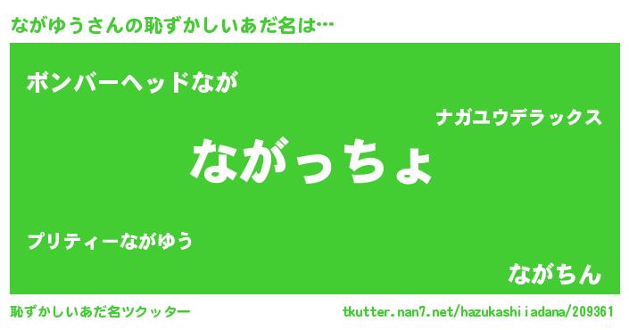 | ヘコむあだ名 | 『酢こんぶ』『ながゆう(小並感)』 |