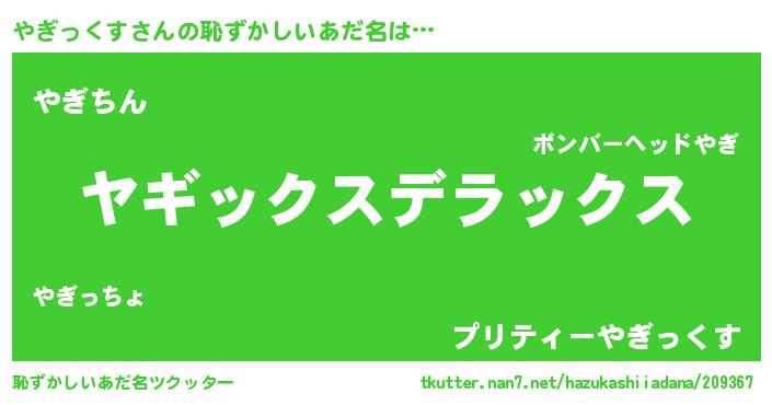 | 意味不明あだ名 | 『自称やぎっくす』『永久保存やぎっくす』 |