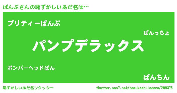 | ヘコむあだ名 | 『ぱんもー』『ぱんぷ(苦笑)』 |