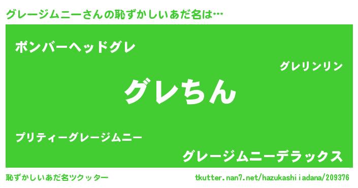 | ヘコむあだ名 | 『グレージムニー(爆)』『グレを』 |