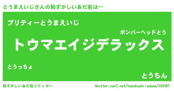 | 意味不明あだ名 | 『自称とうまえいじ』 |