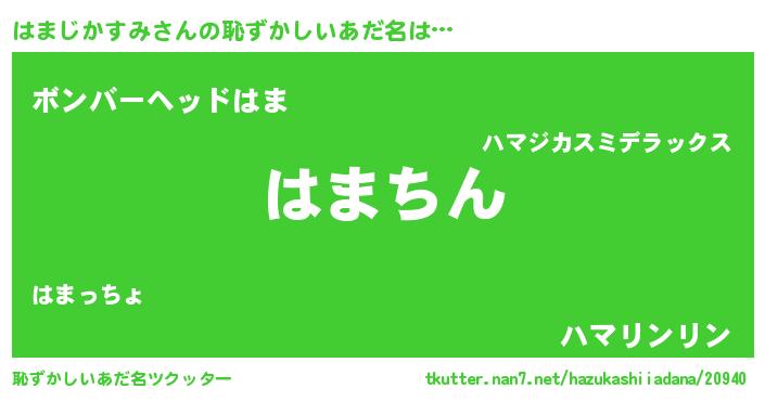 | ヘコむあだ名 | 『はまじかすみ(震え声)』『はま太郎』 |