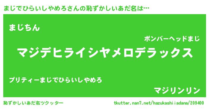 | 意味不明あだ名 | 『自称まじでひらいしやめろ』 |