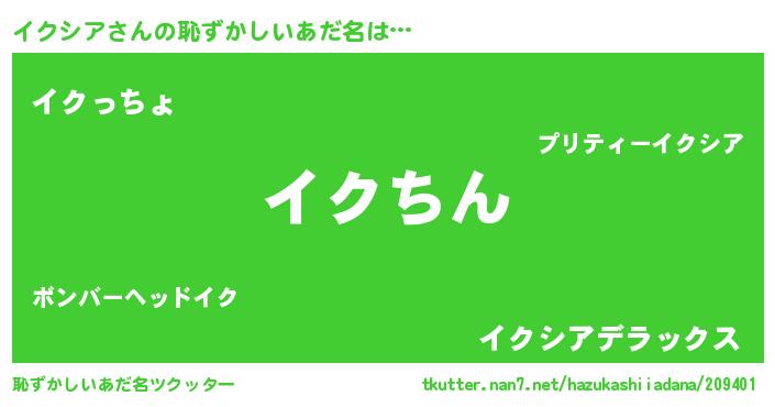 | 意味不明あだ名 | 『永久保存イクシア』『自称イクシア』 |