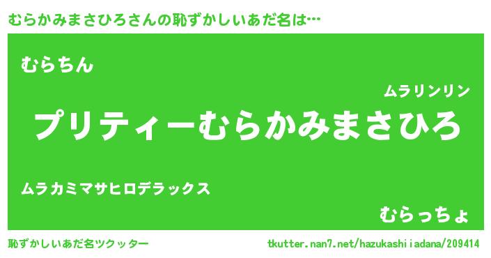 | 可愛いあだ名 | 『むんむん』『むらかみまさひろママ』 |