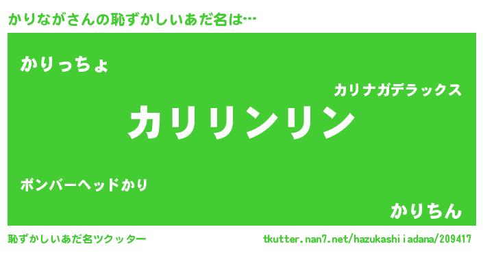 | 女子向けラノベタイトル風あだ名 | 『かりながは平凡を望む』 |