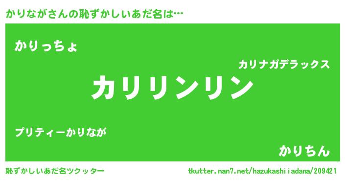 | ヘコむあだ名 | 『かりっぺ』『牛乳』『かりなが(笑)』 |