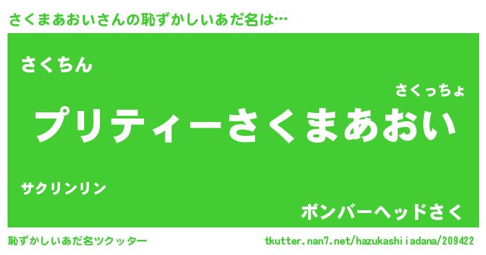 | ヘコむあだ名 | 『さくにー』『さくまあおい(苦笑)』 |