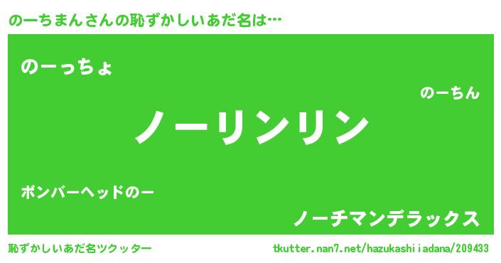 | 男性向けラノベタイトル風あだ名 | 『のーちまんの嫁は女の子じゃないと思った?』 |