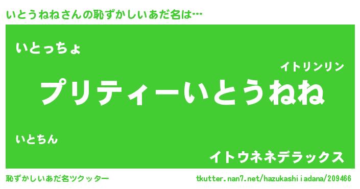 | 胡散臭い通販商品みたいなあだ名 | 『モテモテ間違いなし霊験あらたかなお札…その名も「いとうねね」』 |