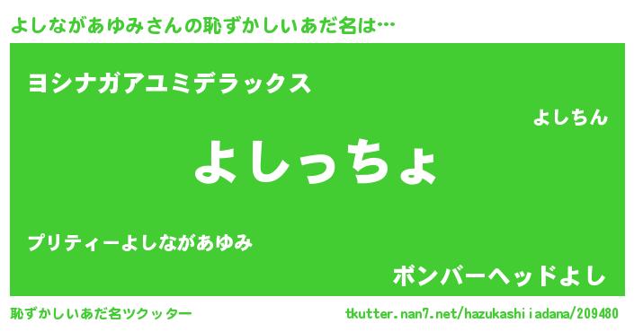 | ヒーロー風カッコイイあだ名 | 『仮面ヨシダー』『ネオヨシナガアユミ』 |