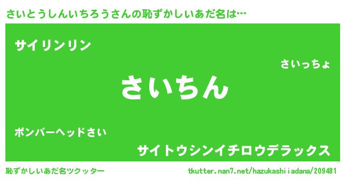 | 意味不明あだ名 | 『永久保存さいとうしんいちろう』 |