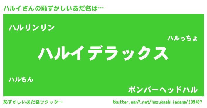 | 男性向けラノベタイトル風あだ名 | 『ハルイ~年齢イコール彼女いない歴の魔法使い~』 |