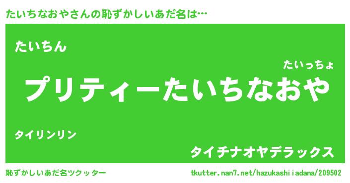 | ヘコむあだ名 | 『たいにー』『たいちなおや(苦笑)』 |