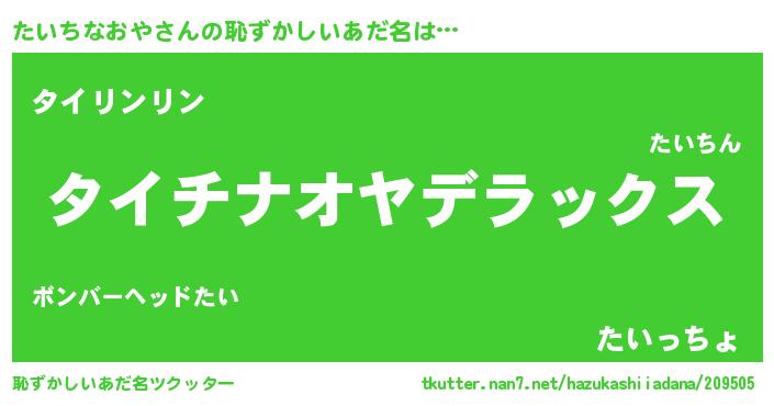 | 欧米人風あだ名 | 『たいちなおや・ステッグマイヤー』 |