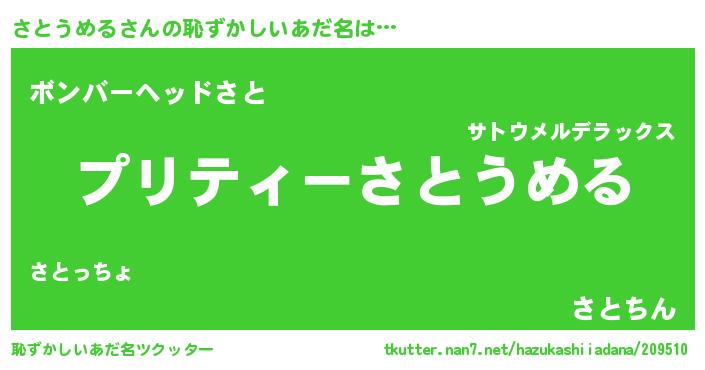 | ヘコむあだ名 | 『さとっふぃ~』『さとうめる(遠い目)』 |