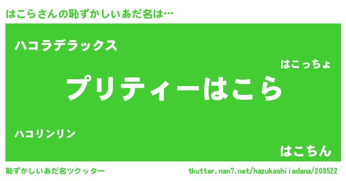 | ヘコむあだ名 | 『はこにゅー』『はこら(爆)』『牛乳』 |