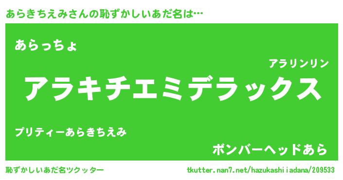 | 意味不明あだ名 | 『自称あらきちえみ』 |