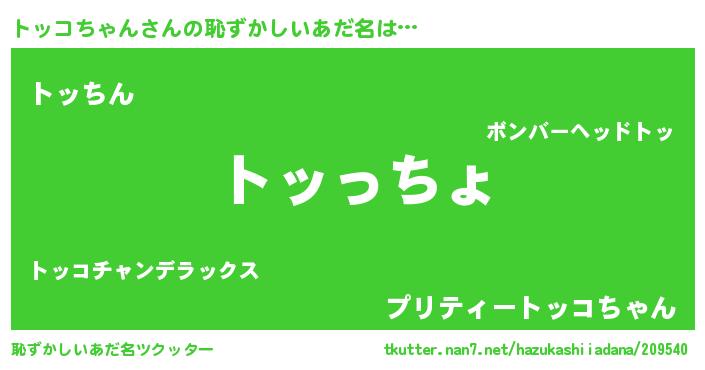 | 意味不明あだ名 | 『トッコちゃんフォーエバー』 |