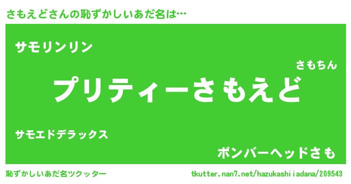 | 意味不明あだ名 | 『ペロリンさもえど』『永久保存さもえど』 |