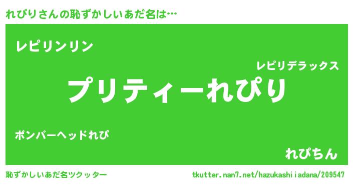 | 男性向けラノベタイトル風あだ名 | 『魔弾の王とれぴり』『れぴりの憂鬱』 |