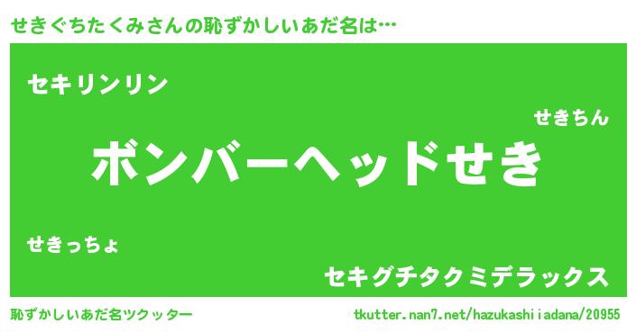 | 意味不明あだ名 | 『眠気覚ましガムせきぐちたくみ味』 |